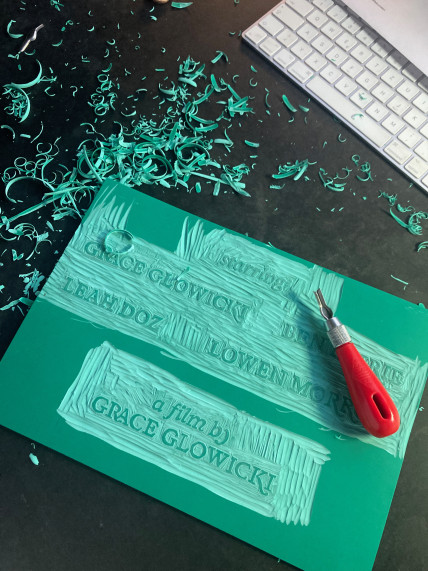 Die Titel wurden im Linolschnittverfahren gedruckt und wieder eingescannt, um ihnen einen handgemachten Charakter zu verleihen und so der DIY- und experimentellen Theaterästhetik des Films gerecht zu werden. Die langen Abstriche der Buchstaben der Schriftart Kalice spielen auf den immer länger werdenden abgetrennten Finger des Geliebten im Film an.