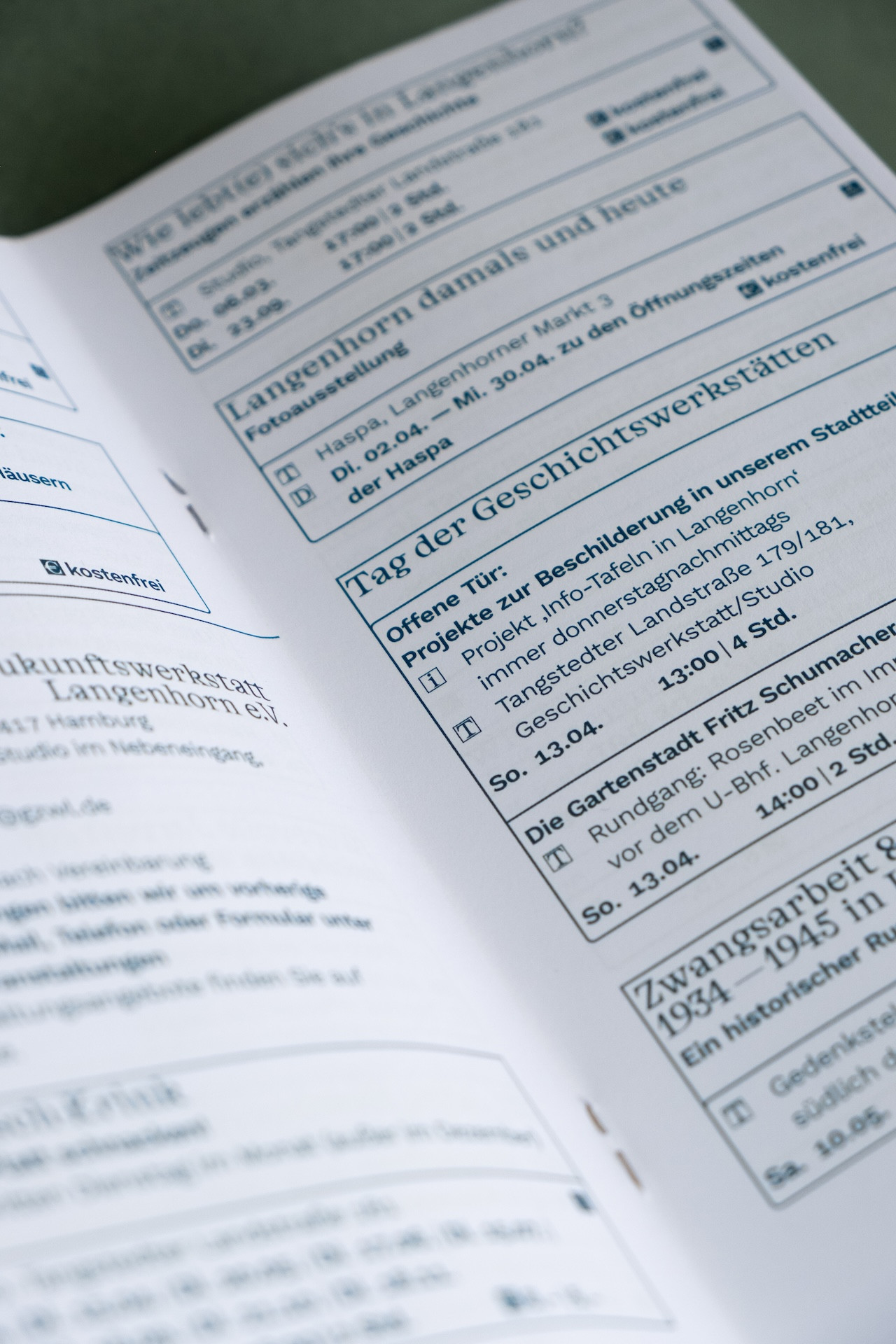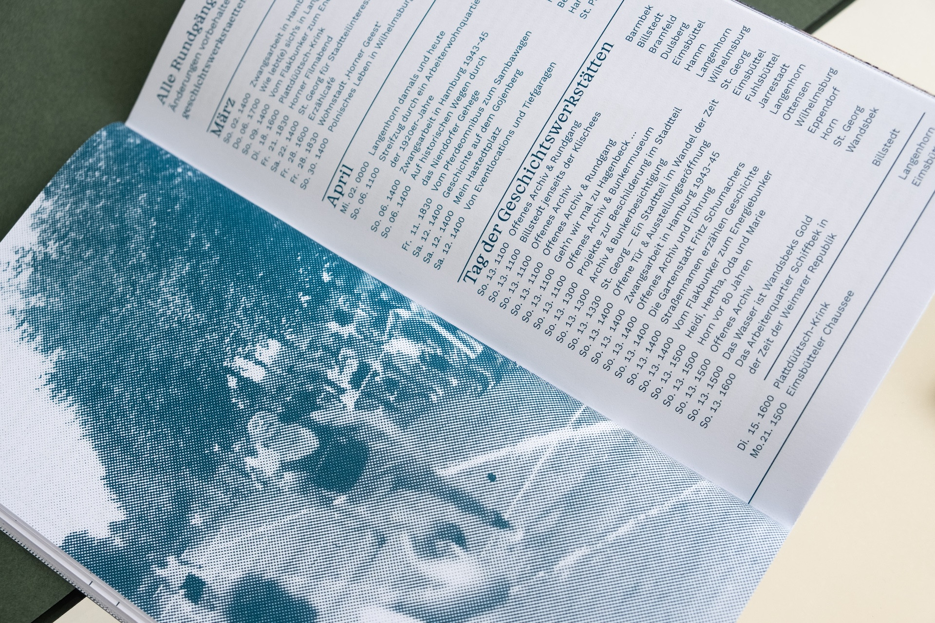 Die Geschichtswerkstätten Hamburg bieten jährlich mehr als 200 Stadtteilführungen, Fahrradtouren und Rundgänge im gesamten Stadtgebiet an. Die Termine werden jährlich im gedruckten Programmheft Kiek Mol! angekündigt, das in den Geschichtswerkstätten, den öffentlichen Bücherhallen und an zahlreichen anderen Orten in der Stadt kostenlos ausliegt.