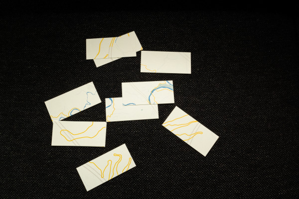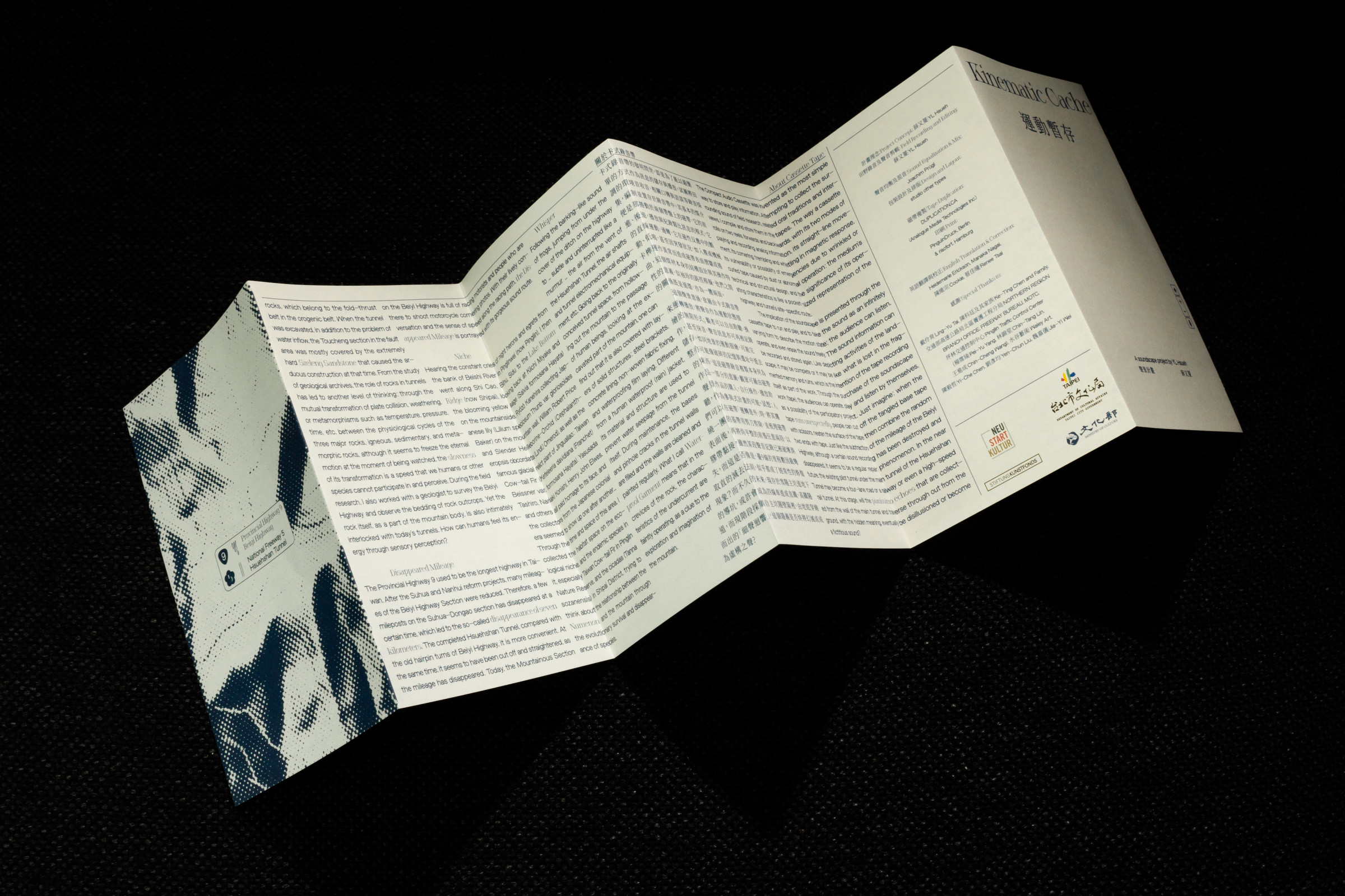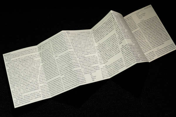Es handelt sich um eine transparente Kassette durch die Licht hindurchscheint und den Hohlraum des Tunnels widerspiegelt. Die Anordnung der chinesischen Schriftzeichen und lateinischen Buchstaben überlagern sich. Das Inlay ist ein Leporello, was wiederum die Assoziation von einem Tunnel anregt. Das abstrahierte, topographische Bild auf der Rückseite des Leporellos strahlt etwas klangliches aus, wie auch die Anordnung der Texte.