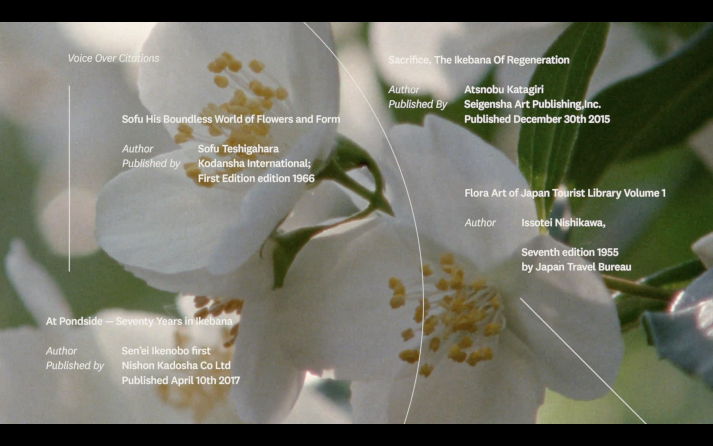 Title design for Ikebana — an experimental documentary by Rita Ferrando and Lily Jue Sheng that reimagines the art of flower arranging. Connecting different practices and perspectives through cinematic assemblage, the film witnesses plants as living, permeable vehicles that hold everyday memories and poetics.