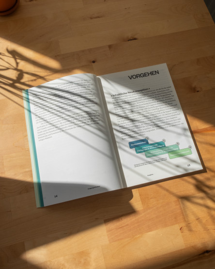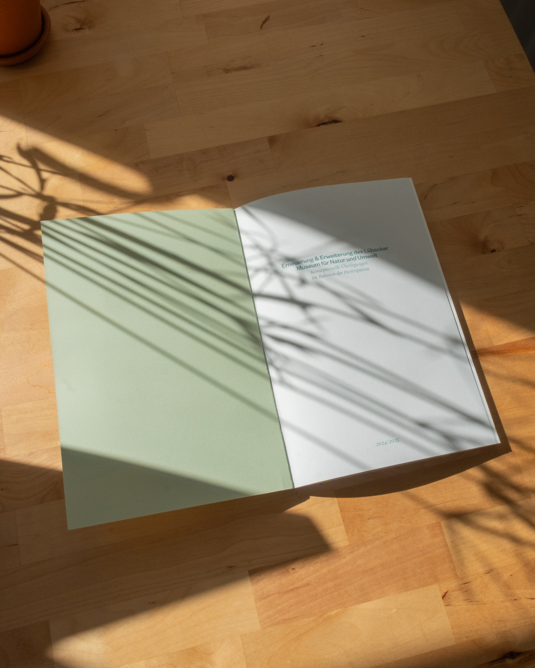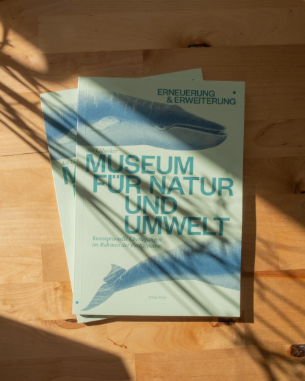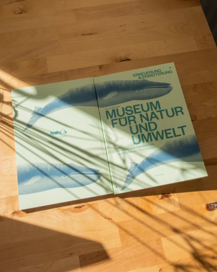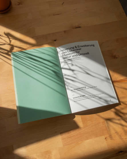 As part of the renovation and expansion of the Lübeck Museum of Nature and Environment, we designed a publication that outlines conceptual deliberations and provides information. The natural colour scheme is seen throughout the entire book with coloured pages next to text and images.
