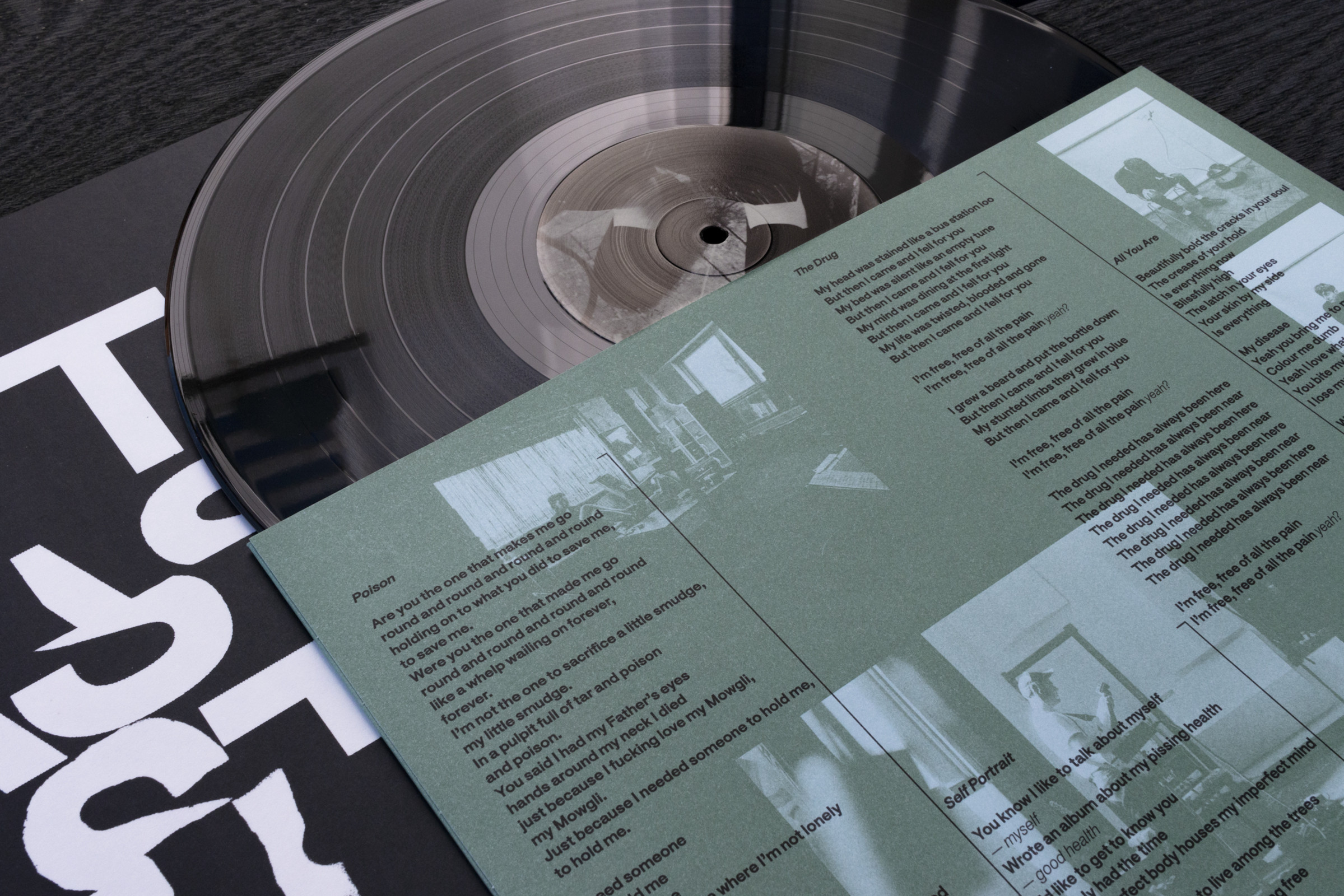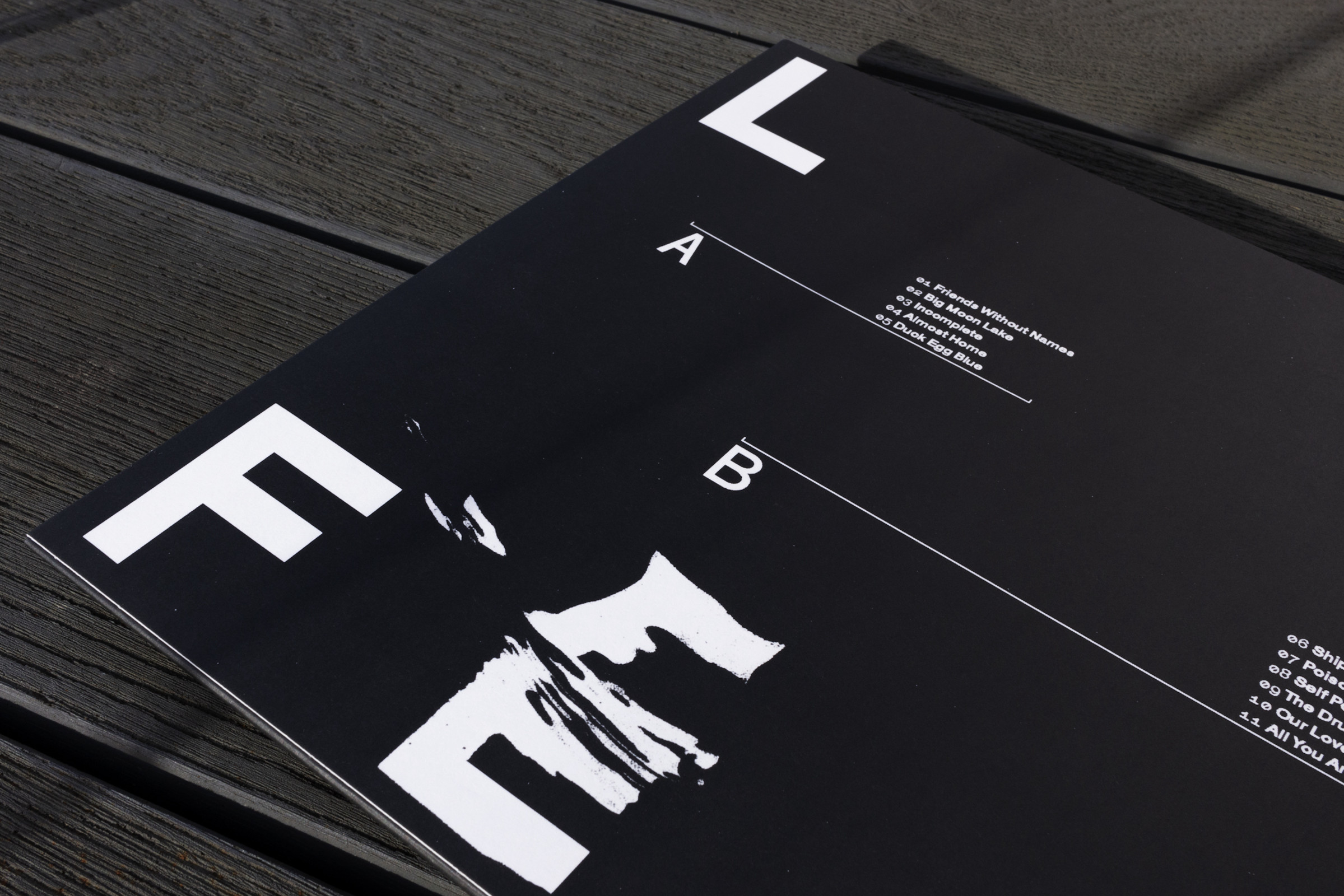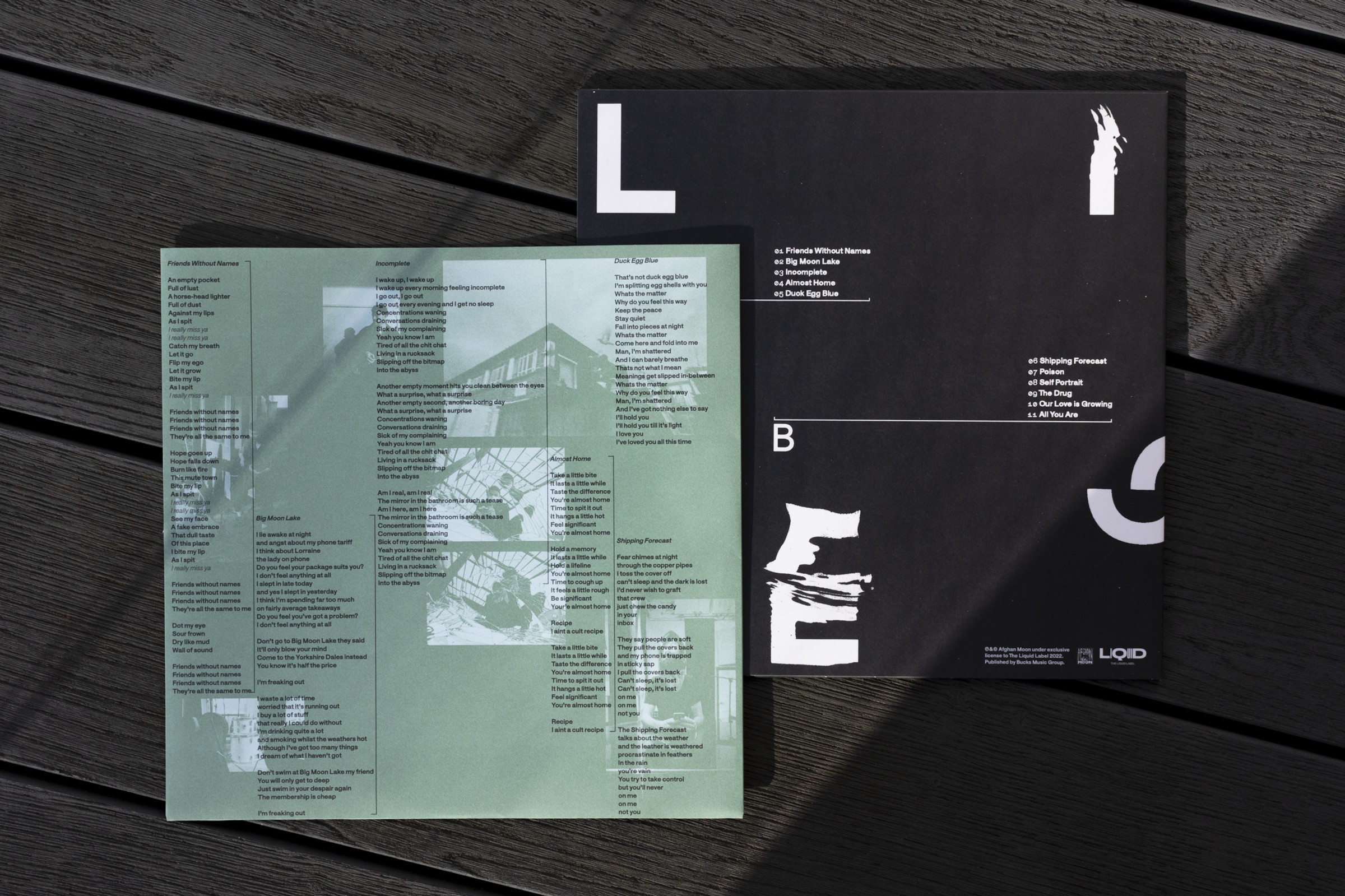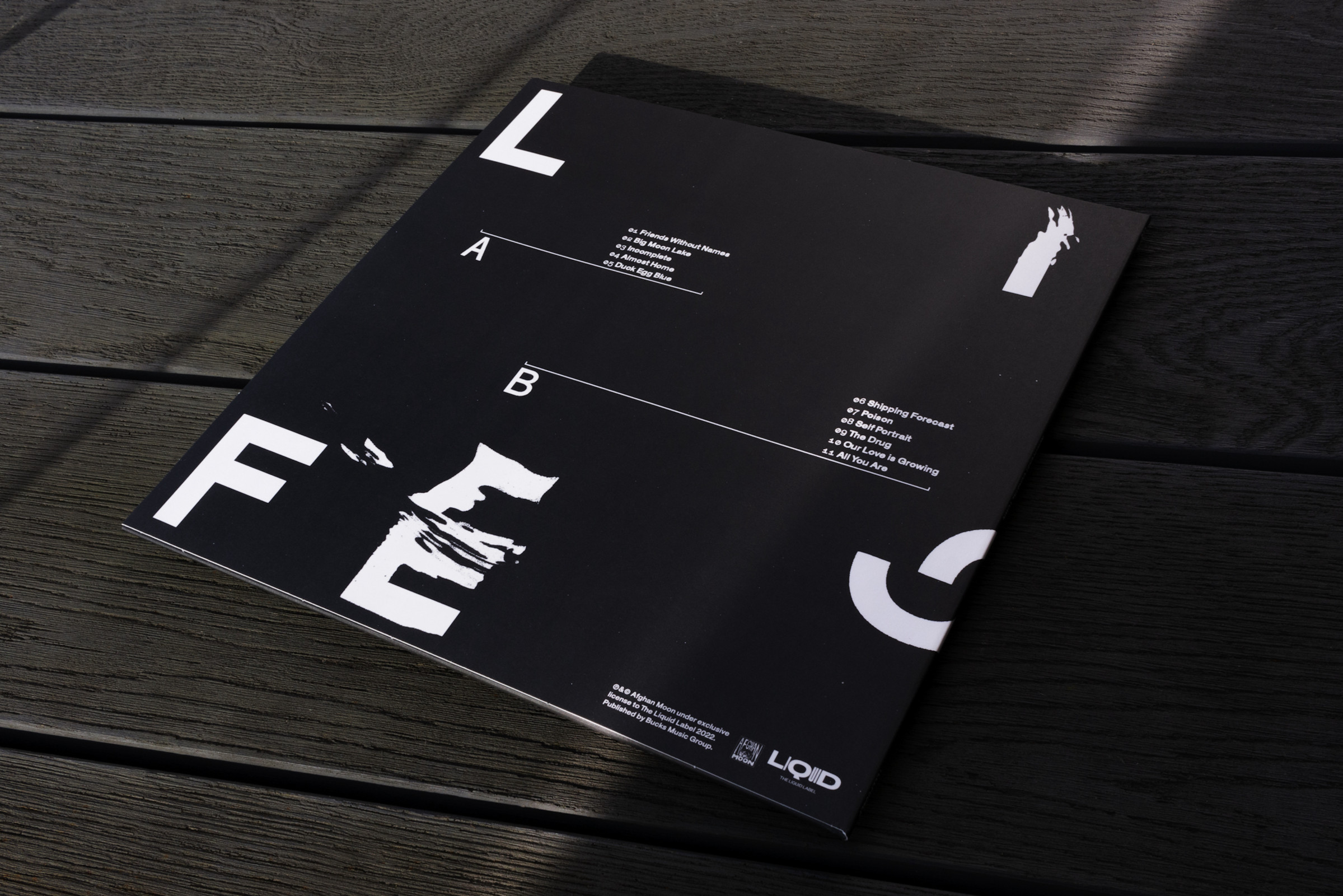 LIFE is a post-punk band from Hull, England. The album musically and lyrically explores a sense of belonging and relationship to their hometown. Water proved to be a unifying element for the band members, and we translated this element into our design. The album cover was created in an analog way by cutting letters, rearranging them, distorting them with water, and then photographically capturing the result.