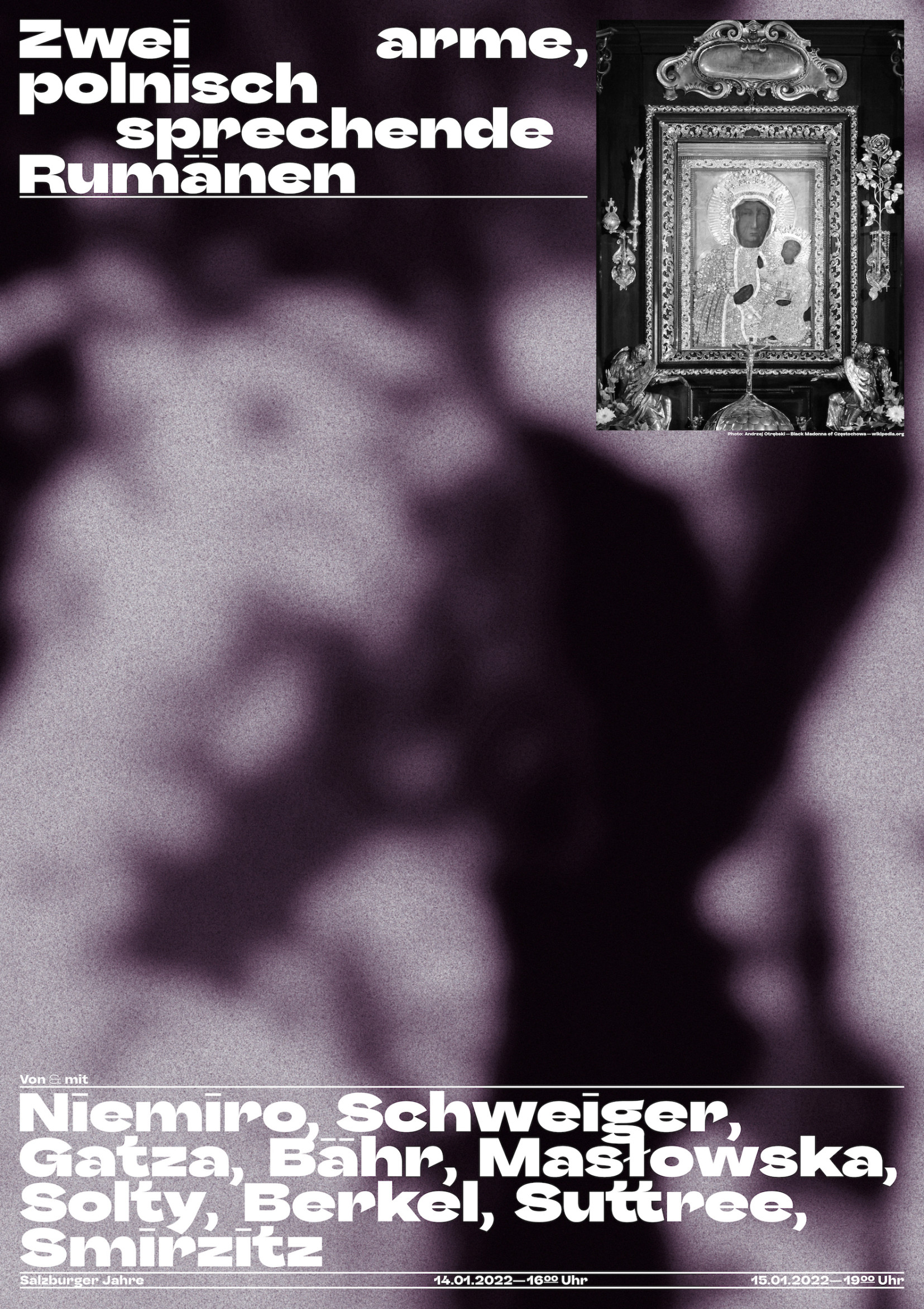 The poster series Salzburger Jahre promotes the plays of theater director Alek Niemiro, which he directed and directs during his studies at the Thomas Bernhard Institute of the University of Mozarteum Salzburg.Â