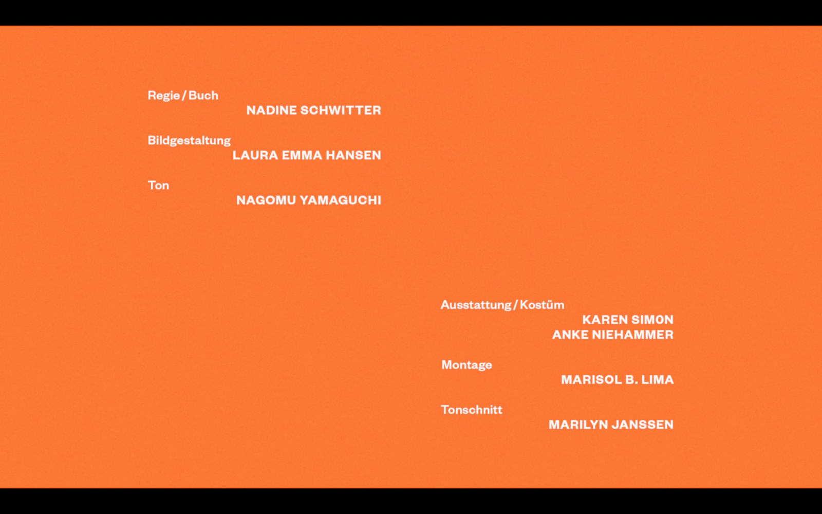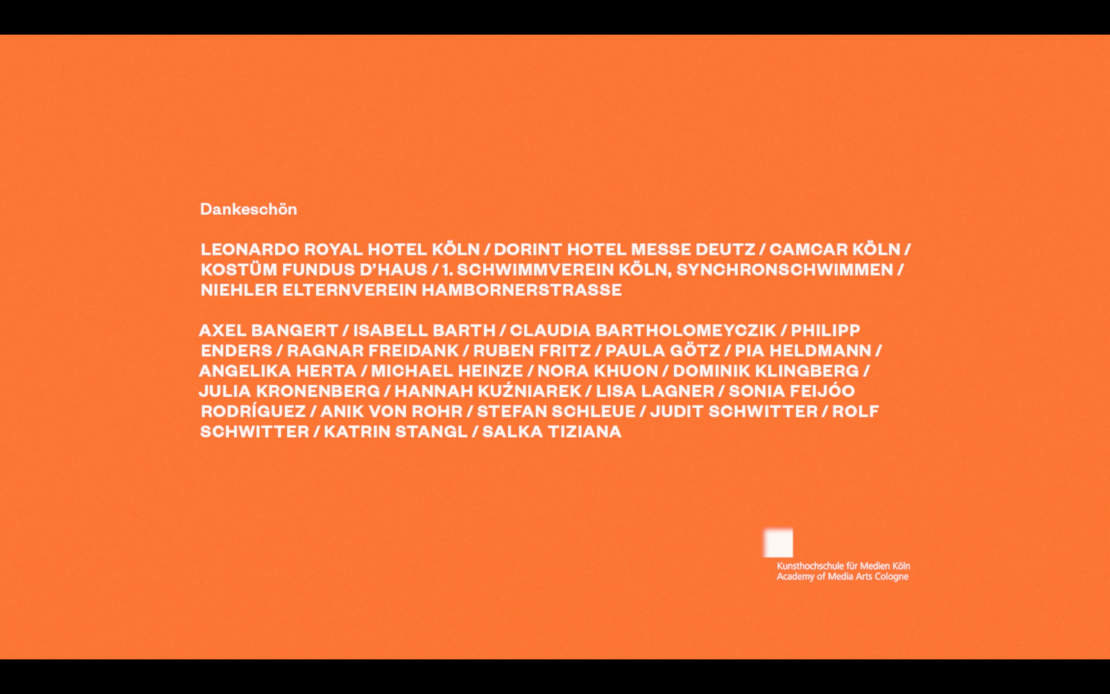 In Synchronschwimmen, a film by Nadine Schwitter, a grandmother, mother and granddaughter find themselves stranded in the car park of a thermal spa hotel. Due to water damage, they become unexpectedly stuck in their car—trapped in a confined space until the breakdown service arrives to free them.