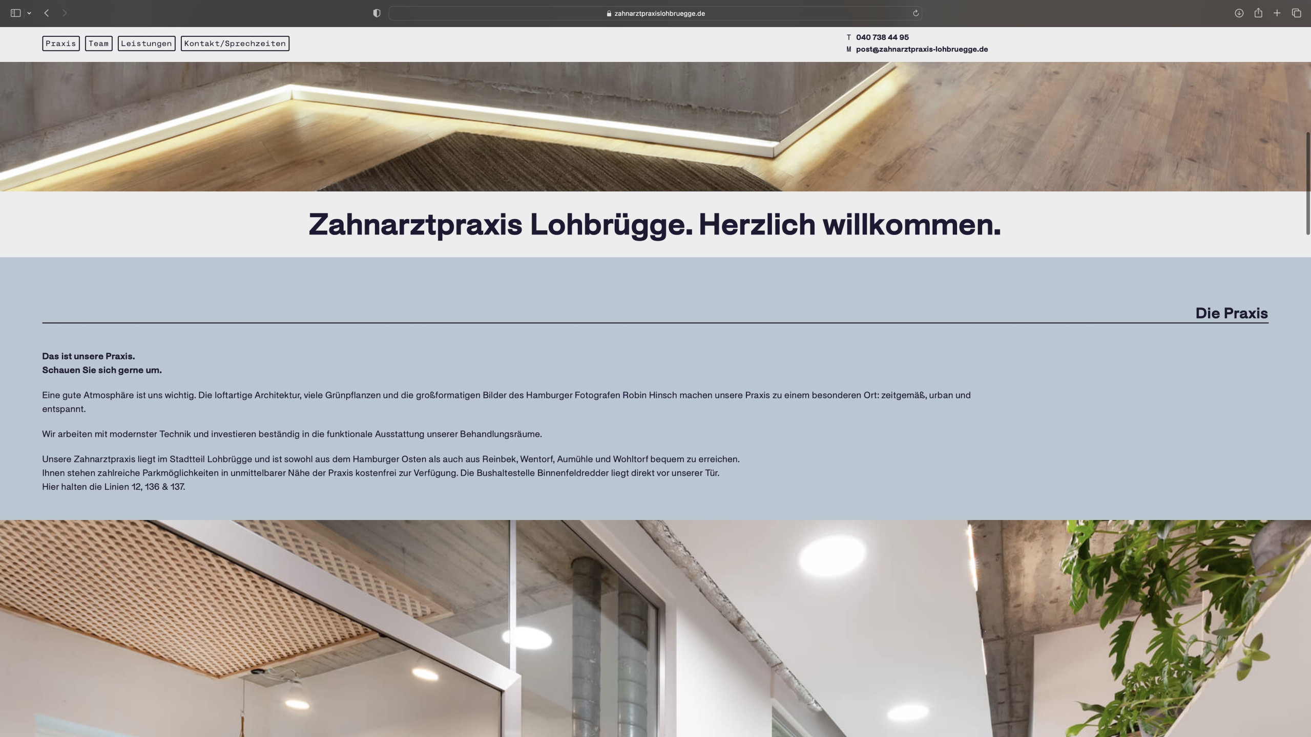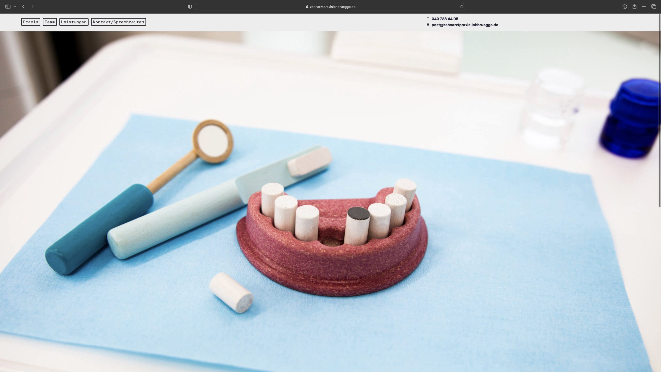 Redesign of the website for the dental practice Lohbrügge — A clear and modern one-pager that appears particularly inviting and appealing due to its muted blue tones.